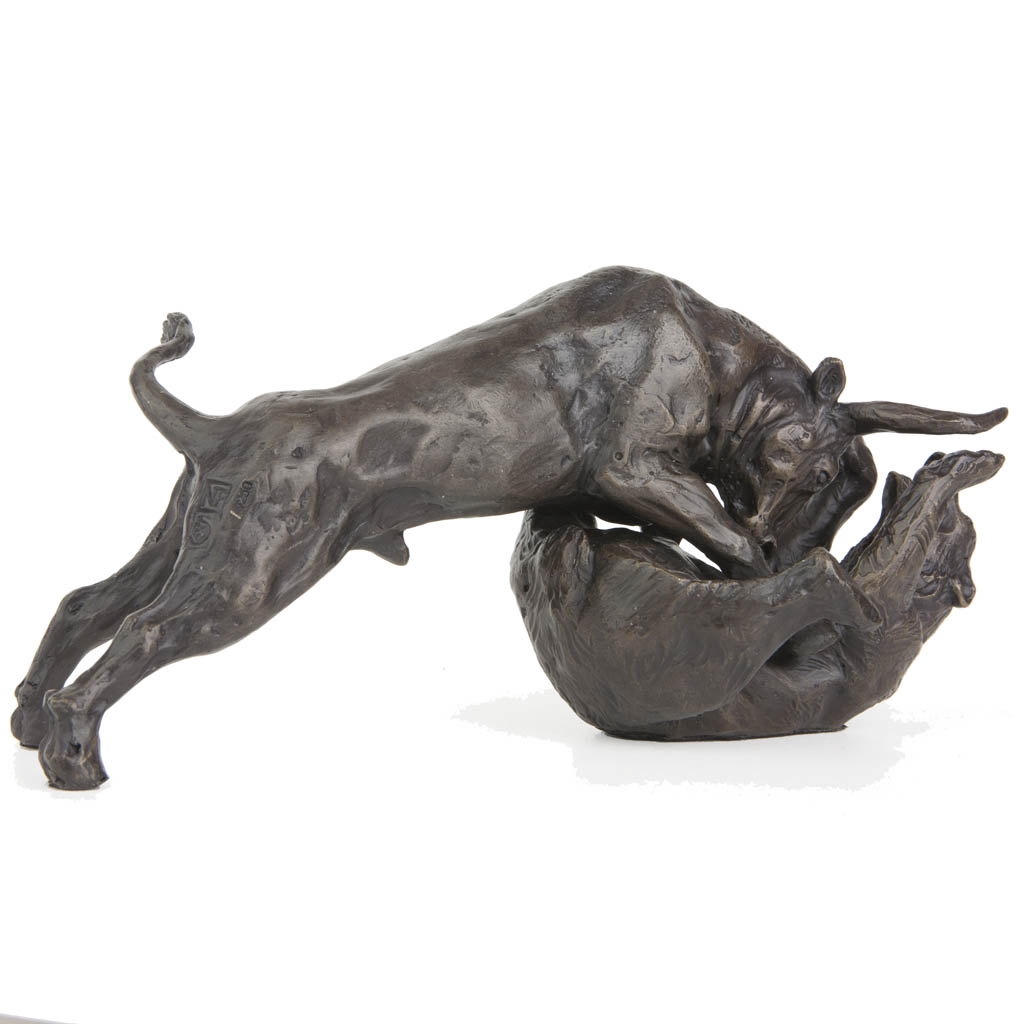 Bronze Bull and Bear Sculpture: Bull and Bear by Sue Maclaurin