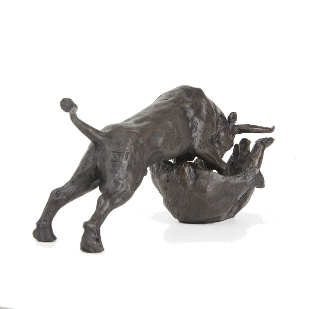 Sue Maclaurin’s stunning interpretation of a grappling Bull and Bear is hand cast in solid foundry bronze and weighs in at an impressive 3.7kg / 8lb 4oz – dramatic enough to grace even the most discerning of desks!
