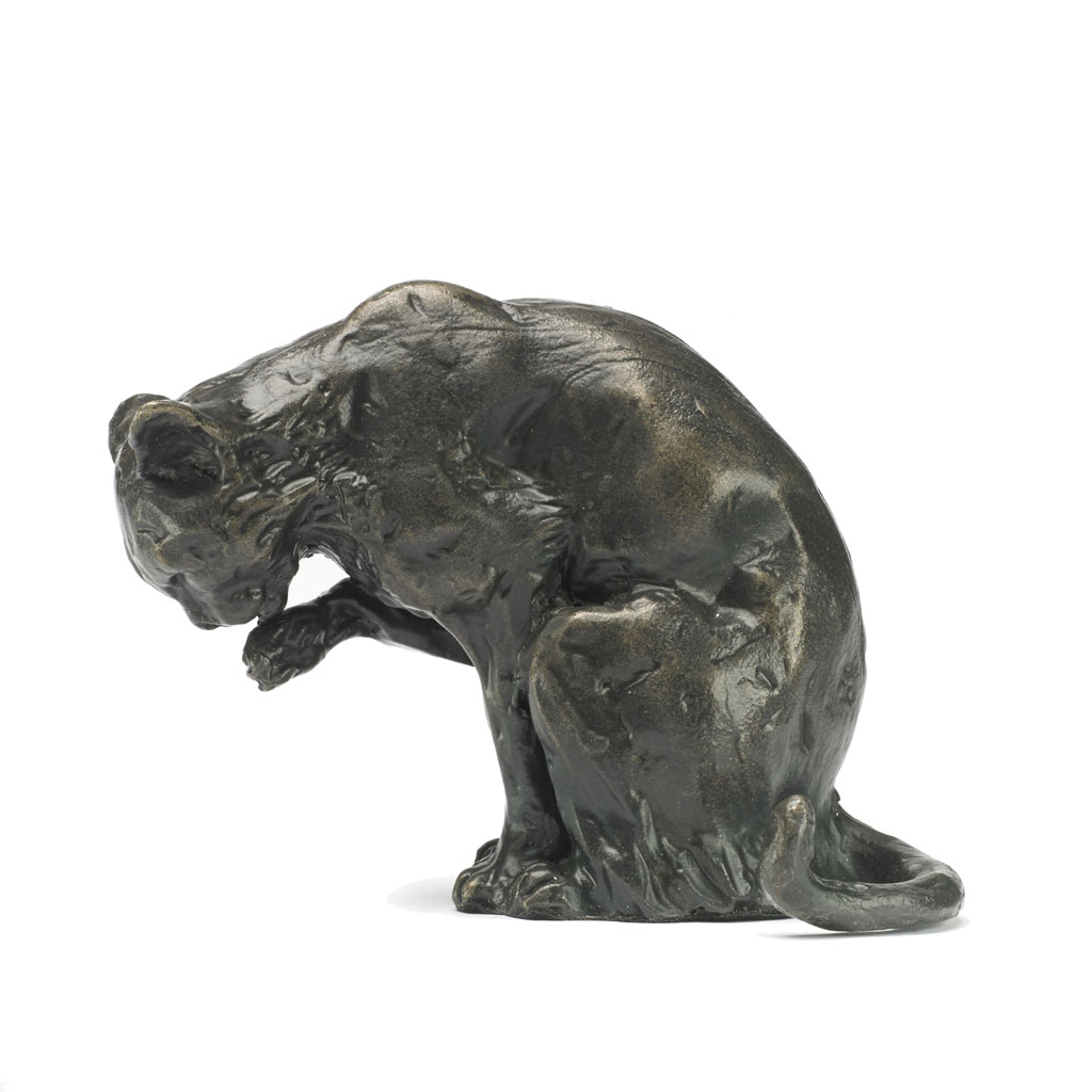 Bronze Cat Sculpture: Cat Licking Paw by Sue Maclaurin