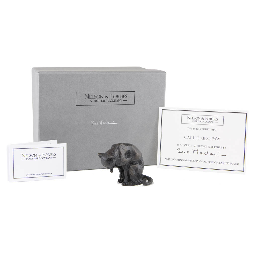 Cat Licking Paw is presented in a beautiful hand made gift box, created by our box maker in the Midlands and is accompanied by a certificate of authenticity.