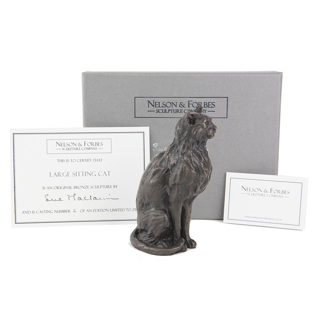 Bronze Cat Sculpture: Large Sitting Cat by Sue Maclaurin