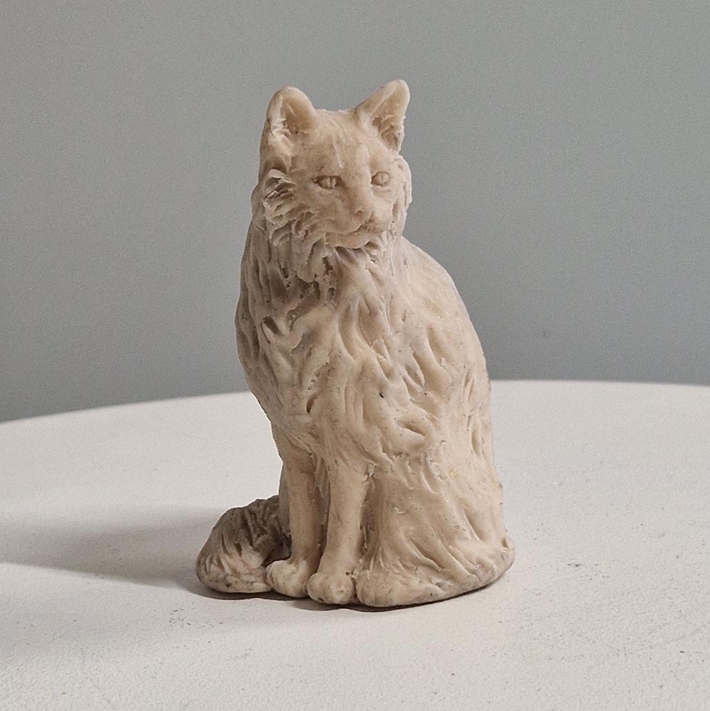 Following the popularity of Sue Maclaurin’s life size Garden Long Haired Sitting Cat, we have received numerous calls from collectors asking if we could please produce a Long Haired Sitting Cat in our ‘classic’ scale, suitable for display on a side table or mantlepiece.