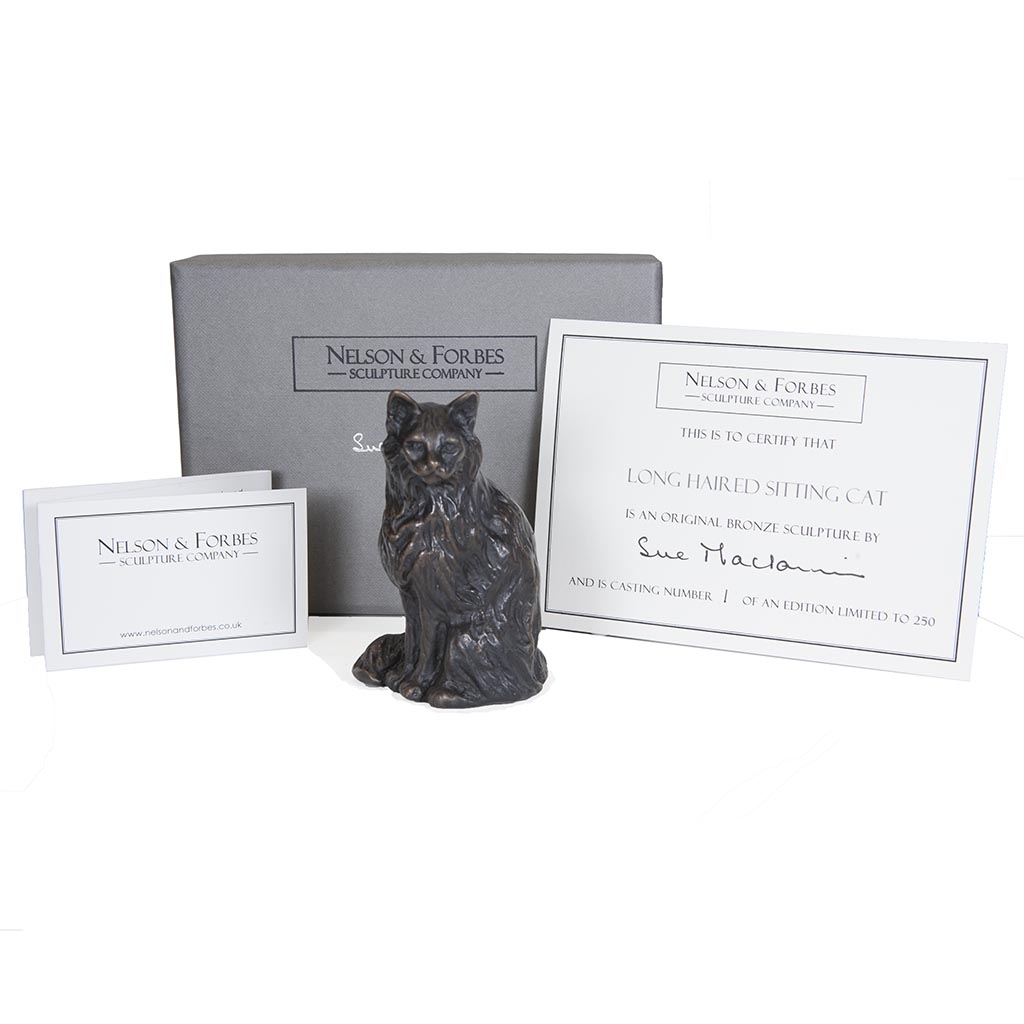 Foundry bronze ‘Long Haired Sitting Cat’, limited edition of 250, hand cast in Britain with free delivery worldwide.