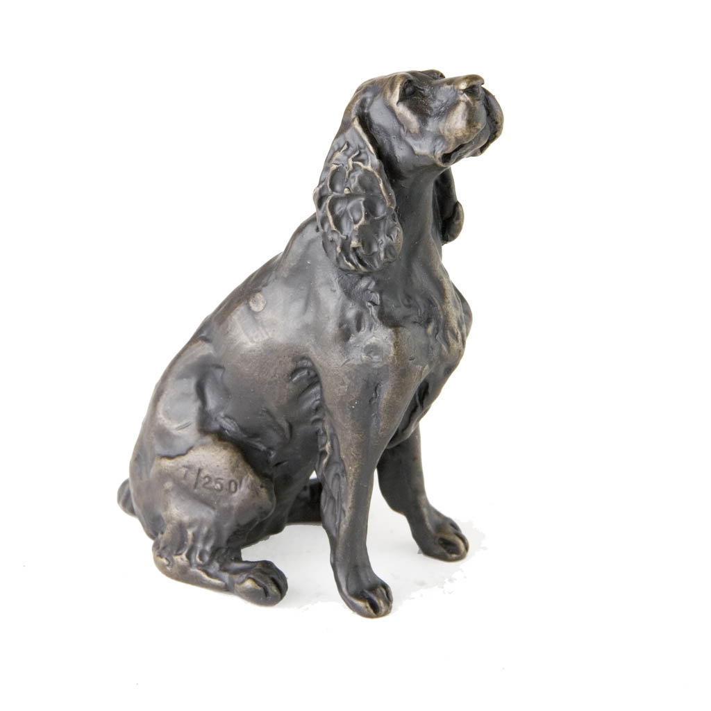 Sitting Cocker Spaniel II (Docked) has been carefully hand cast in solid bronze in a British foundry using the ancient lost wax technique of casting bronze.  Each casting in the limited edition of 250 worldwide is entirely cast by hand, with a new mould being created and then destroyed during the weeks long casting process required for every casting.