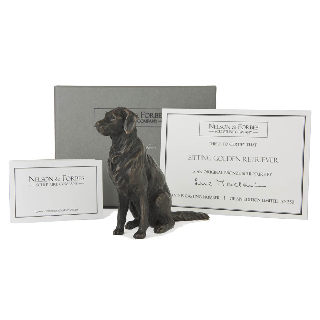Hand cast in solid bronze by Nelson & Forbes our British foundry as a limited edition of just 250 castings worldwide, this Golden Retriever sculpture arrives beautifully gift boxed, ready to be given as a wonderful gift.