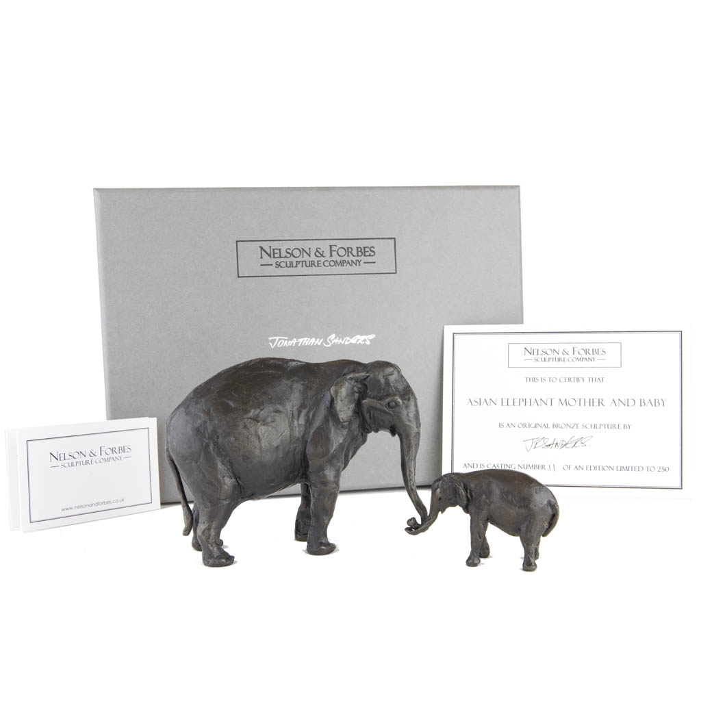 Every casting of Asian Elephant Mother and Baby is individually numbered as one of a limited edition and bears the artist’s signature along with our ‘NF’ maker’s mark.  It arrives beautifully presented in a British handmade gift box, accompanied by an artist signed and numbered certificate of authenticity, all ready to be given as a wonderful gift.