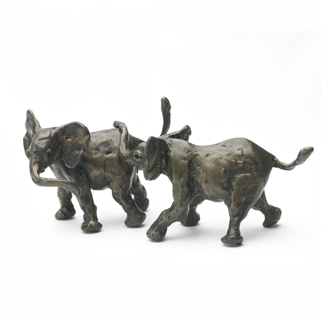 This delightful sculpture of a pair of baby elephants playing is composed of two separate elephants that can be arrange as you wish.