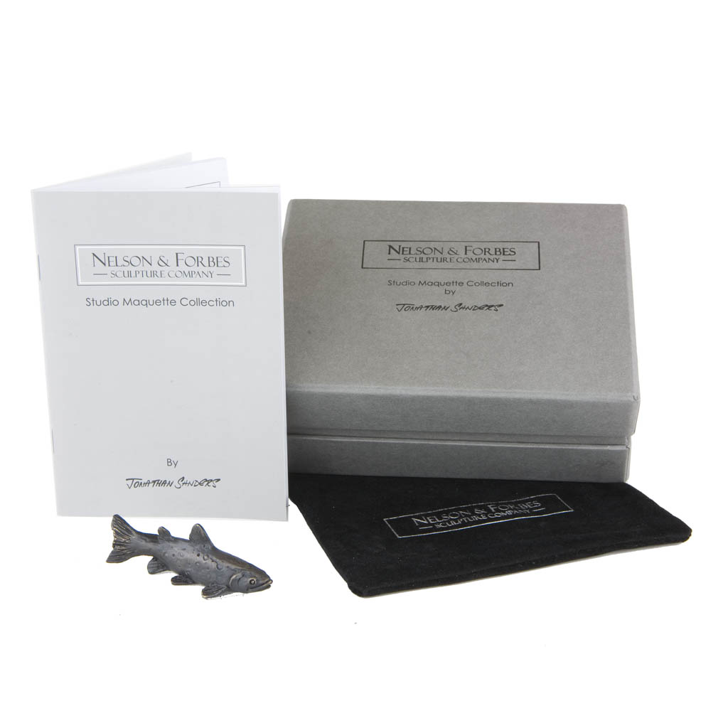 This Jonathan Sanders bronze sculpture, ‘Brown Trout Maquette’ was cast by hand in a British foundry by Nelson & Forbes, as limited edition of just 500 castings.  It is part of the Nelson & Forbes ‘Studio Maquette Collection’, which was launched in 2015 following requests by collectors for miniature sculptures that would make ideal gifts.