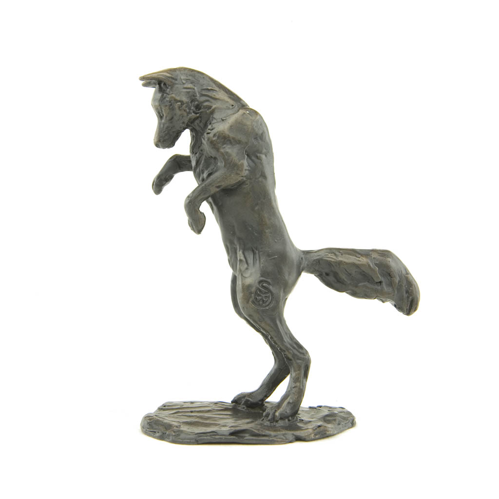Bronze Fox Sculpture: Pouncing Fox Maquette by Sue Maclaurin