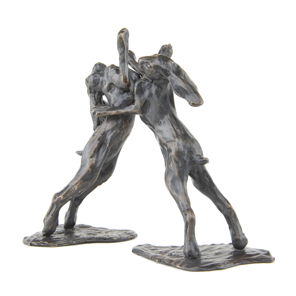 Bronze Hare Sculpture: Boxing Hares Maquette by Sue Maclaurin