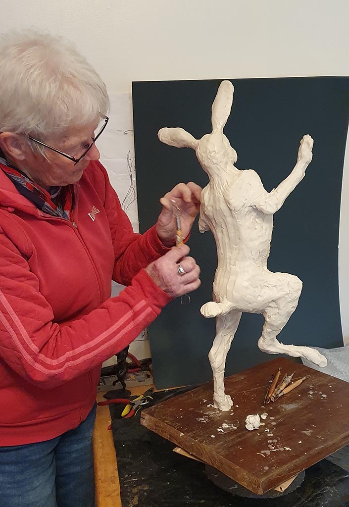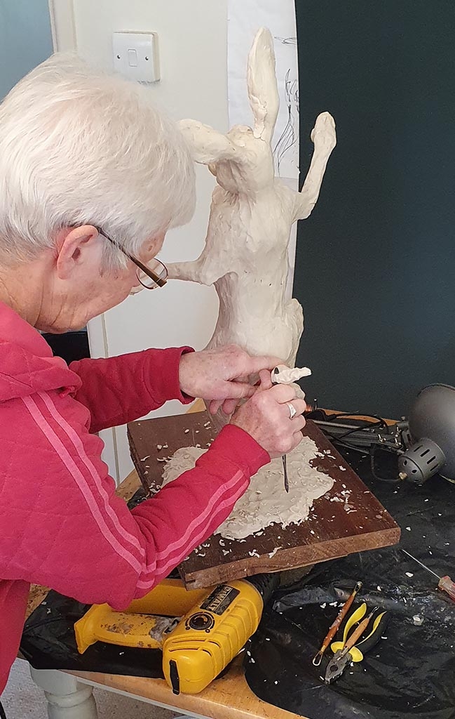 A white house in the Wiltshire countryside is now home, with two Siamese cats, two horses, a thriving sculpture studio and a saddlery business that means Sue’s skills as a Master Saddle Maker command a constant waiting list. Sue continues to sculpt both the wildlife that surrounds her home daily as well as other traditional animals such as pigs and thoroughly enjoys hearing stories of the joy that the bronze castings of her pieces bring to collectors.