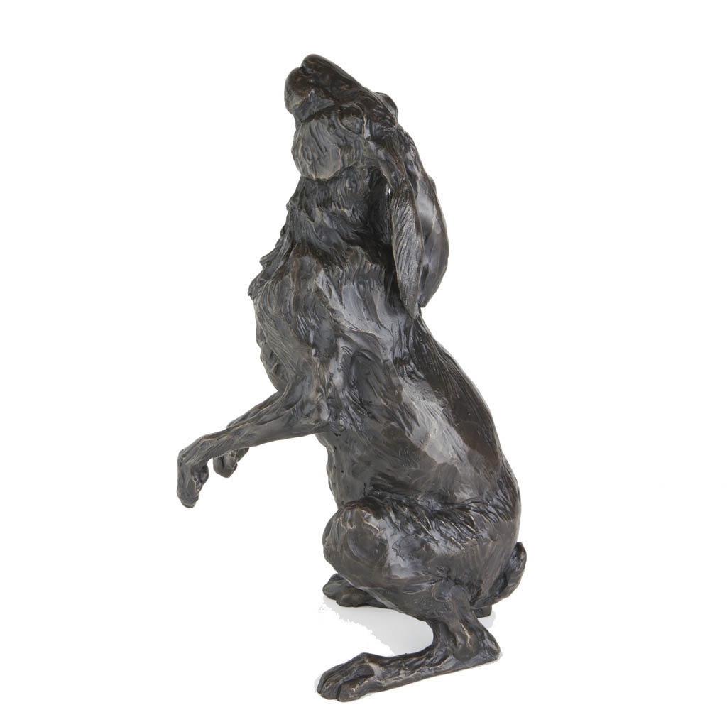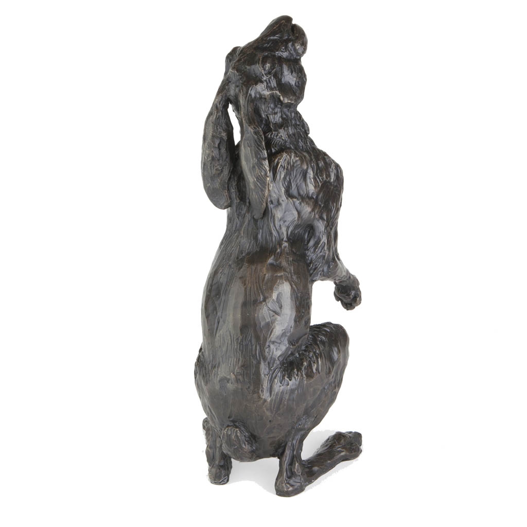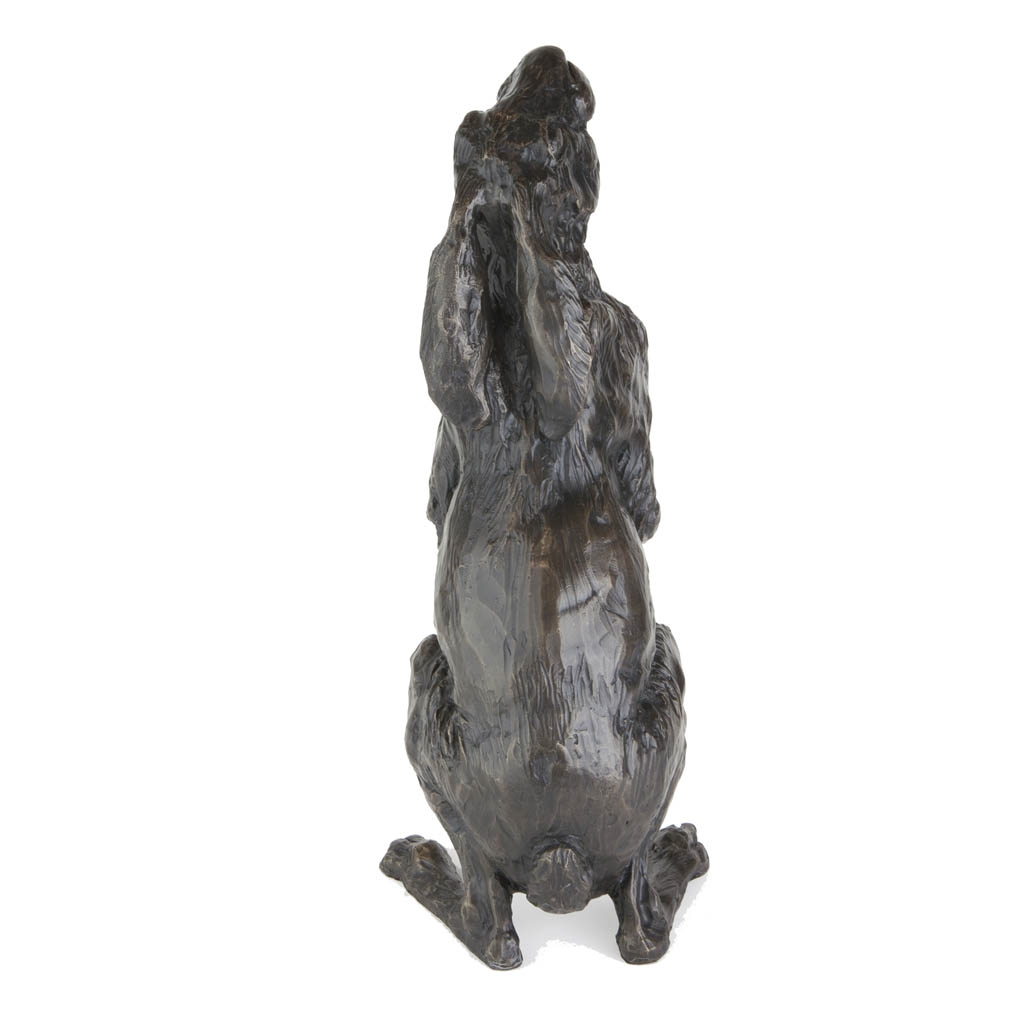 Measuring 39cm/15 ½” high, this noble sculpture captures the mystical hare in arguably its most iconic pose, gazing serenely at the moon and stars above.