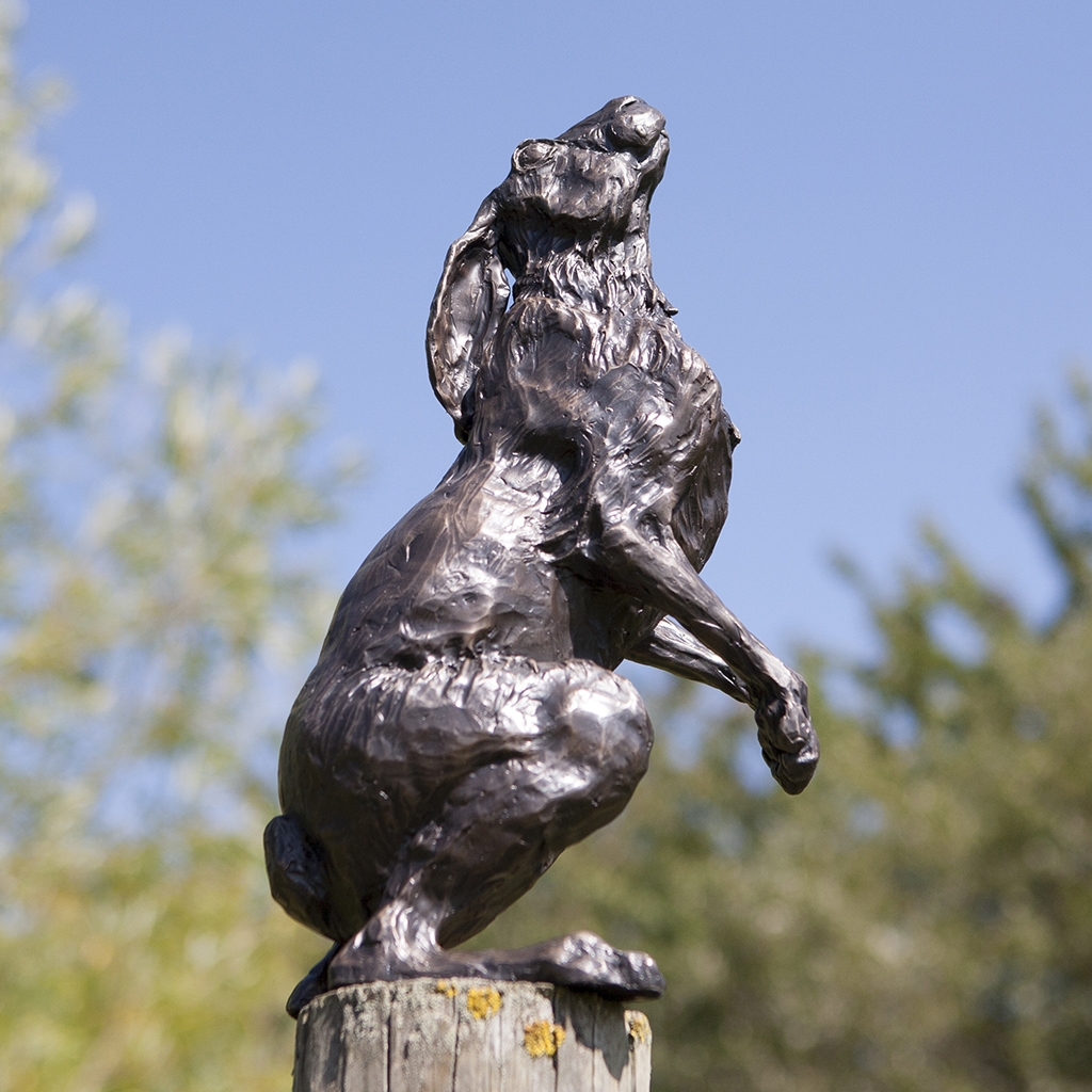 Bronze Hare Sculpture: Garden Moon Gazing Hare by Sue Maclaurin (Life Size)