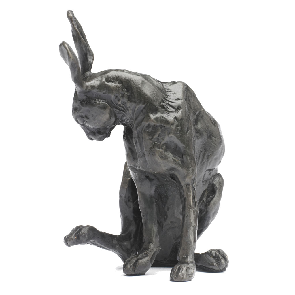 Bronze Hare Sculpture: Grooming Hare by Sue Maclaurin