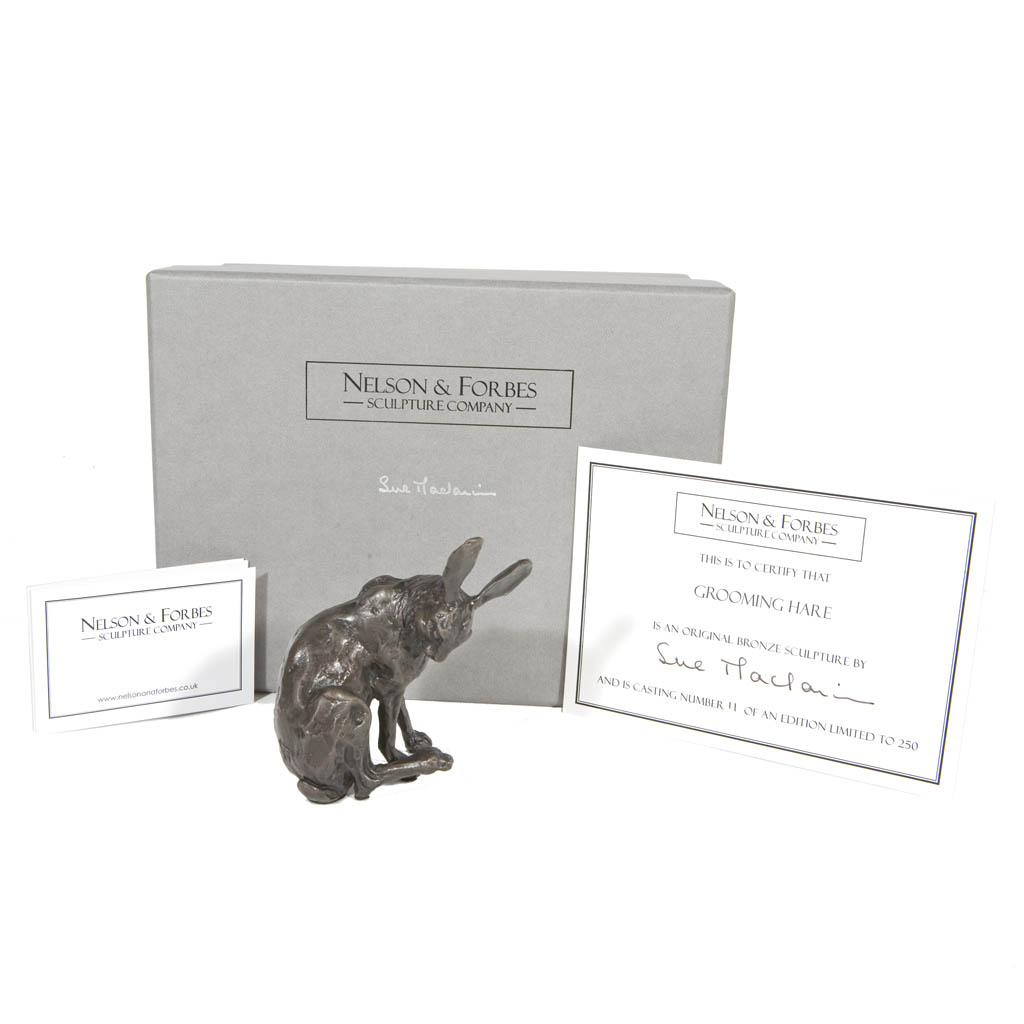 This solid bronze sculpture by Sue Maclaurin of a Grooming Hare is a foundry casting of her original sculpture and took two weeks to create by hand in a British foundry and is limited to an edition of just 250 castings.