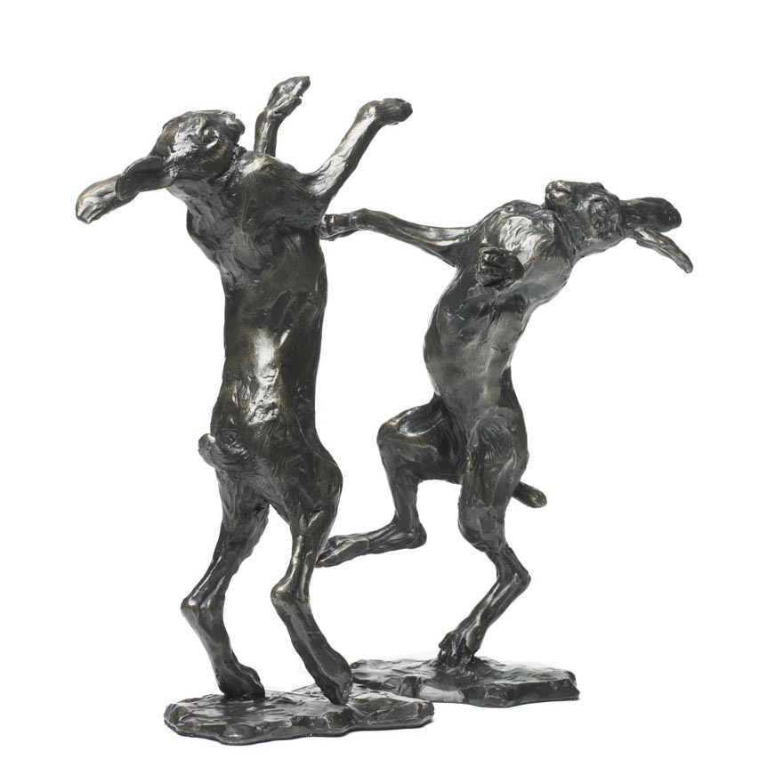Bronze Hare Sculpture: Large Boxing Hares by Sue Maclaurin