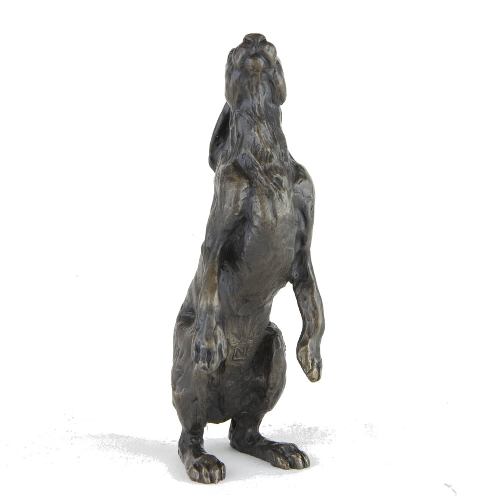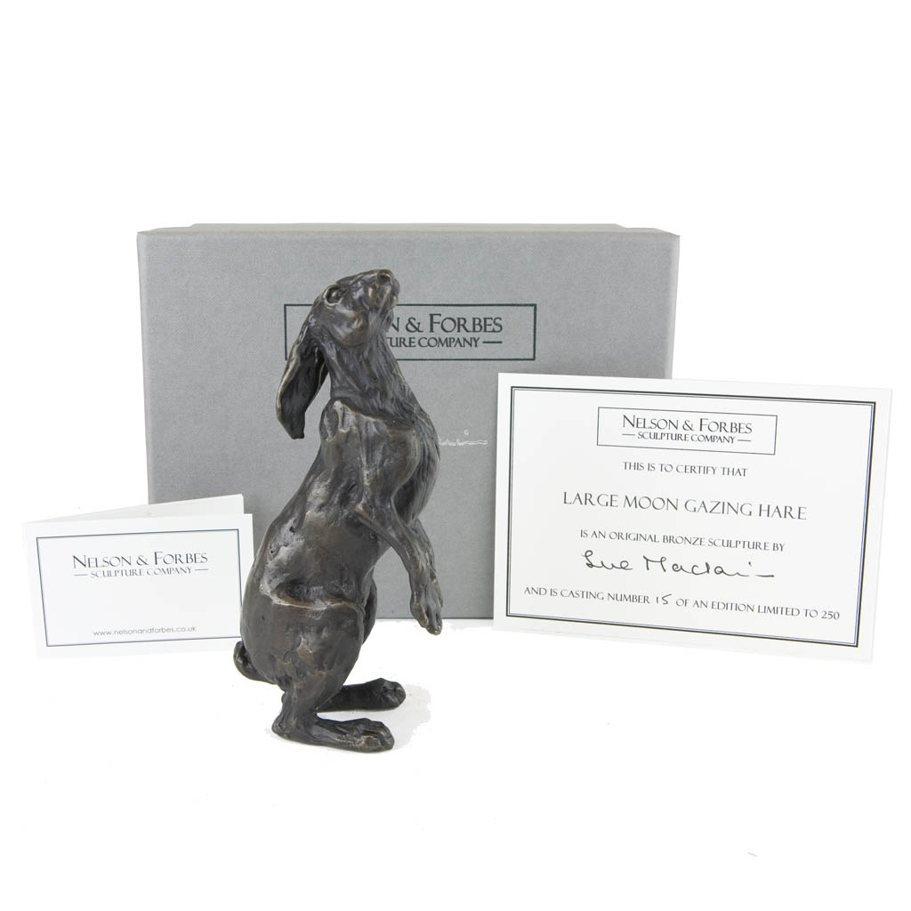 This solid bronze sculpture of a Large Moon Gazing Hare is a Nelson and Forbes foundry casting of am original sculpture by artist Sue Maclaurin.