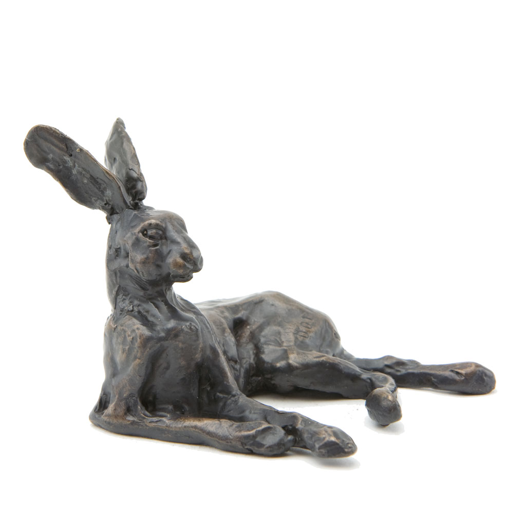 Bronze Hare Sculpture: Lying Hare Maquette by Sue Maclaurin