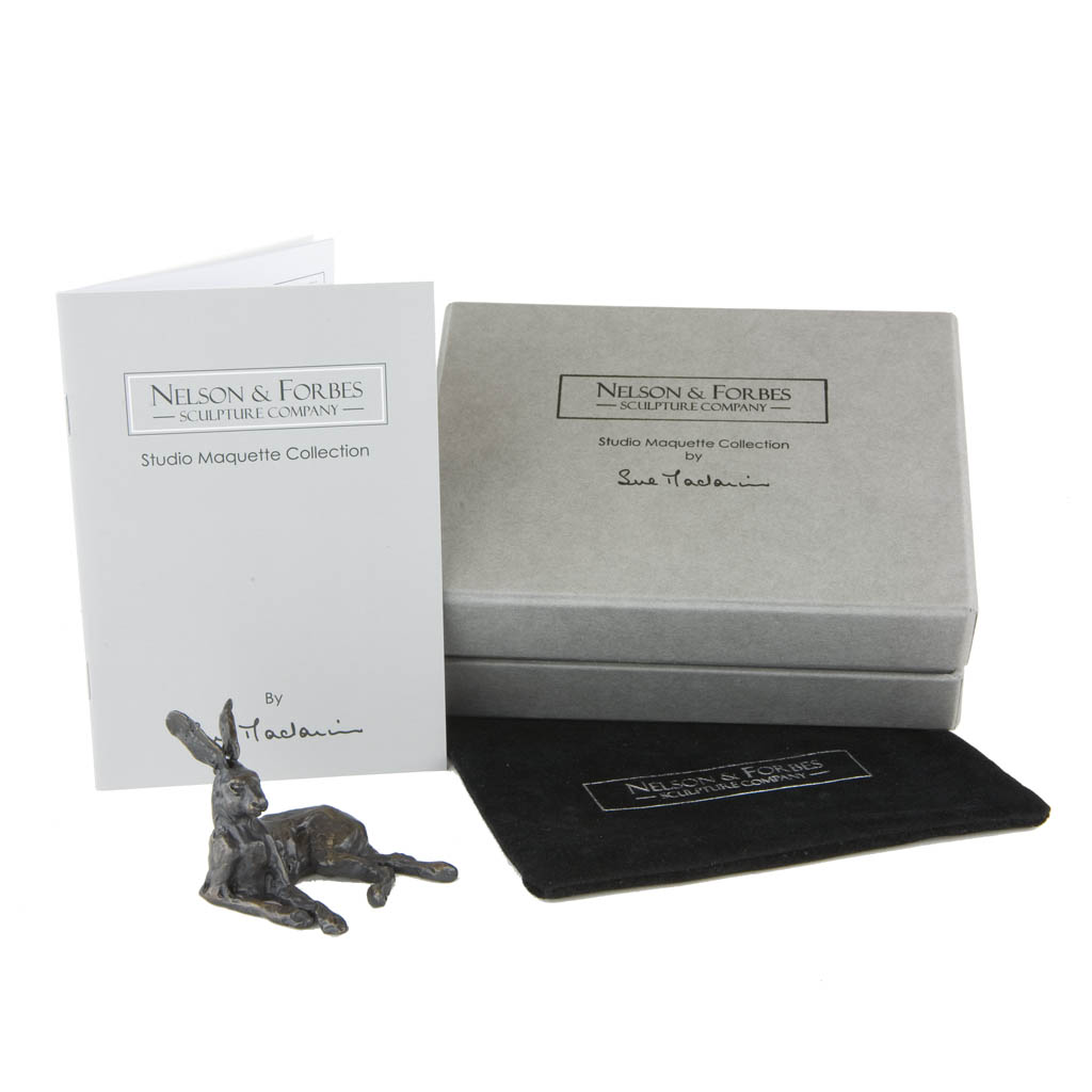 This Sue Maclaurin bronze sculpture of a Lying Hare Maquette was cast by hand in a British foundry by Nelson & Forbes, as limited edition of just 500 castings.  It is part of the Nelson & Forbes ‘Studio Maquette Collection’, which was launched in 2015 following requests by collectors for miniature sculptures that would make ideal gifts.