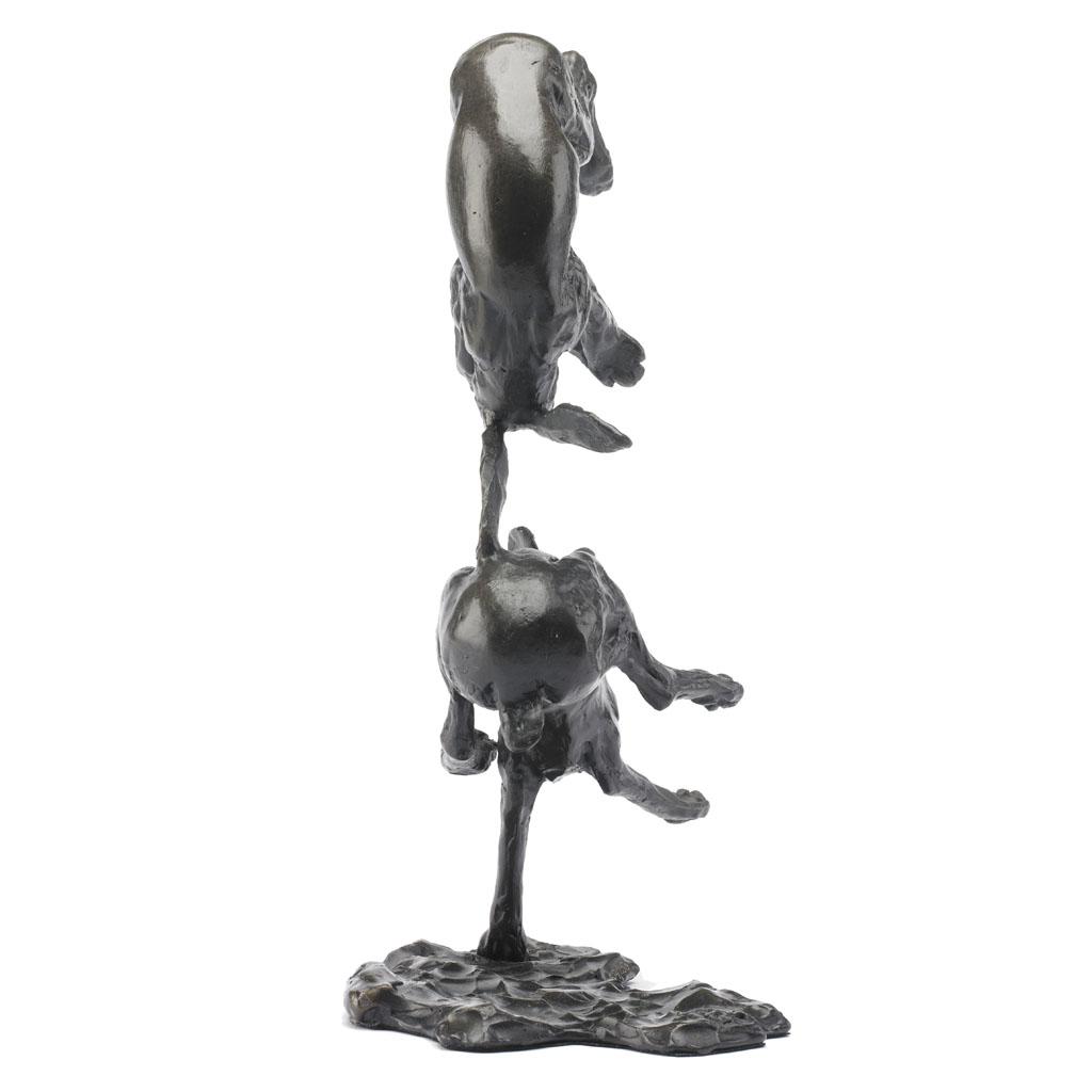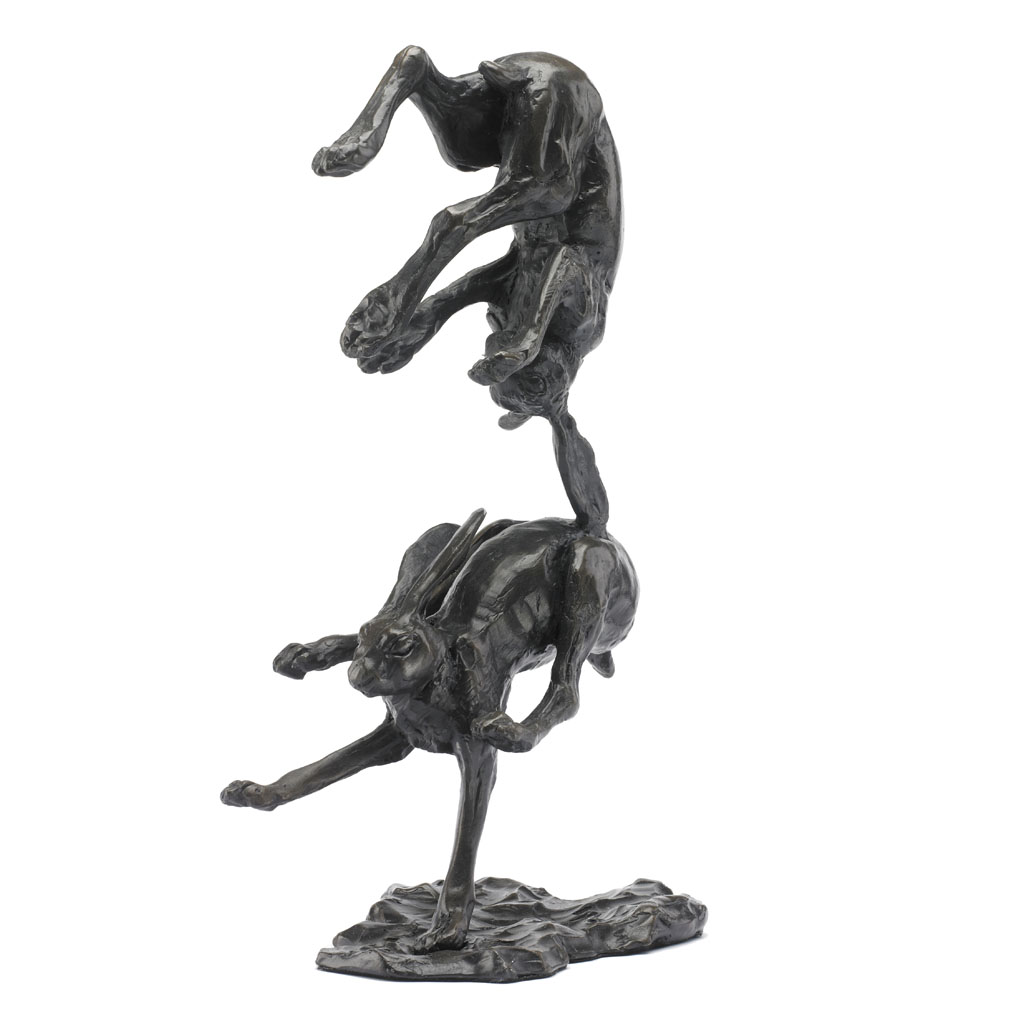 Bronze Hare Sculpture: Tumbling Hares by Sue Maclaurin