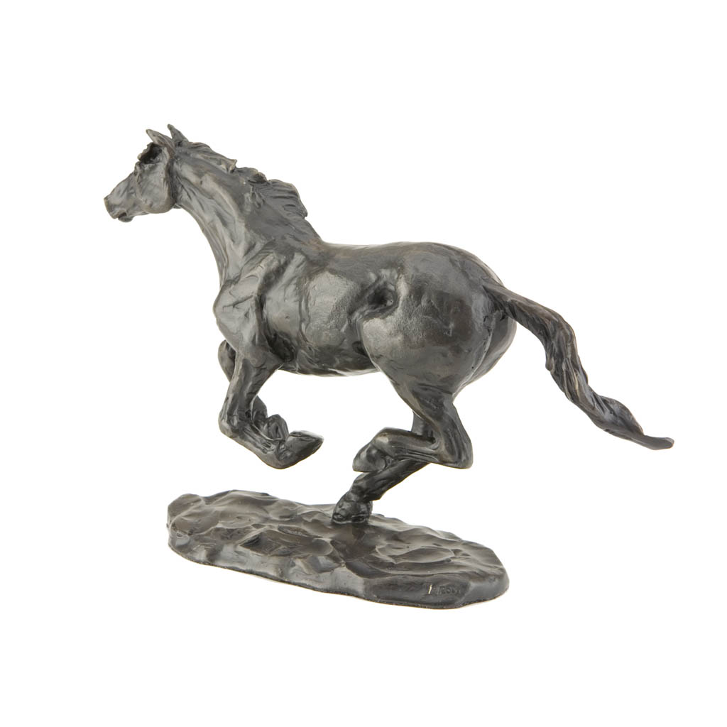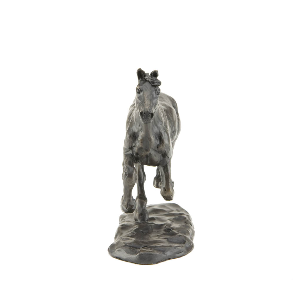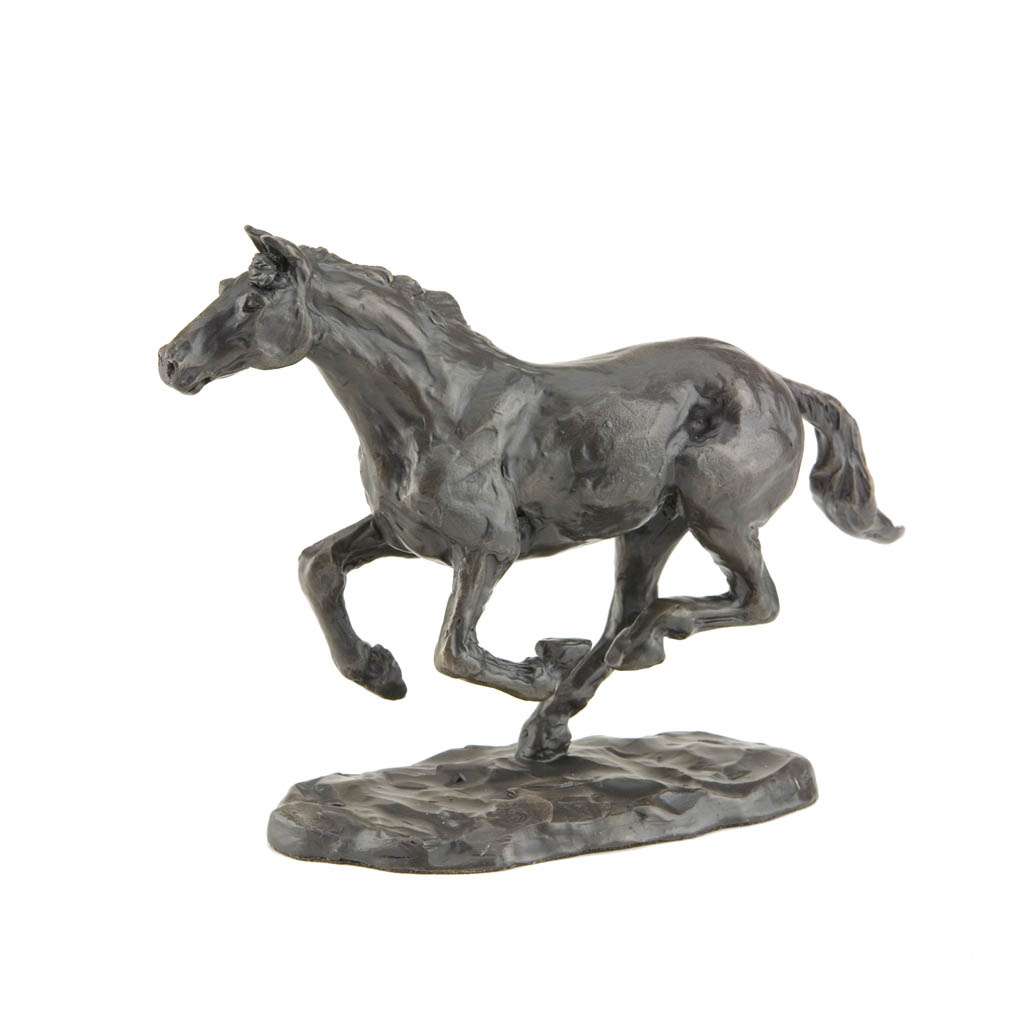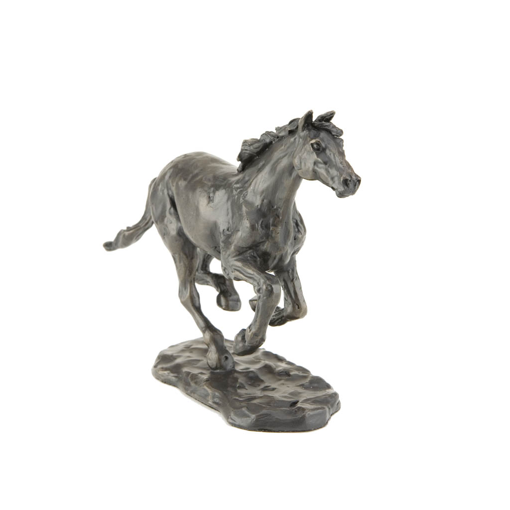 This glorious bronze horse sculpture, “Galloping Horse”, captures the freedom and joy of a happy horse in full exuberant stride. Created by sculptor and saddle maker Sue Maclaurin, it perfectly captures the freedom and grace of one of nature’s finest athletes at play.