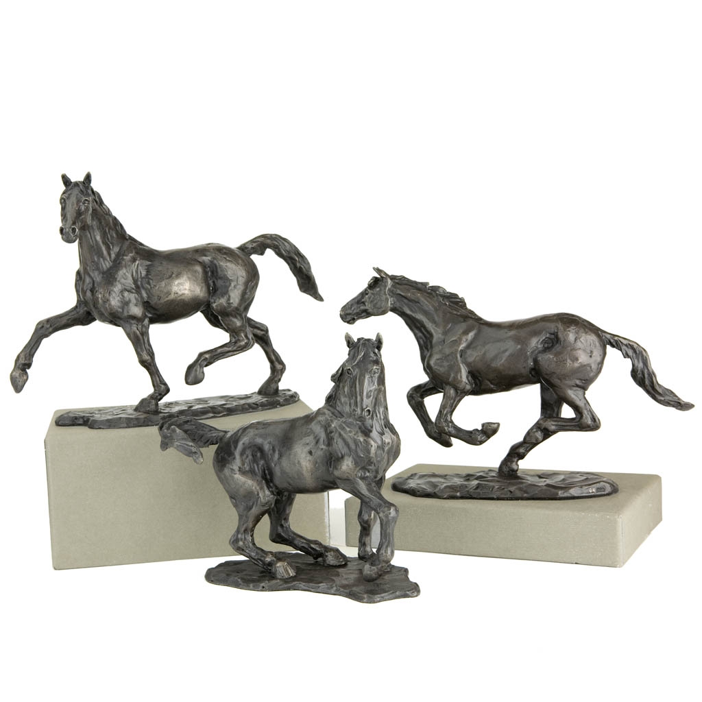 I have purchased the entire collection of 5 bronzes by Sue Maclaurin.. they are my own personal collection to enjoy..She has captured the realistic motion, movement and physique of horses in each of the sculptures..each horse is a beauty in its own right..I am sure to enjoy them well past my “riding” years..Now I can enjoy a horse, while not “at” the barn…