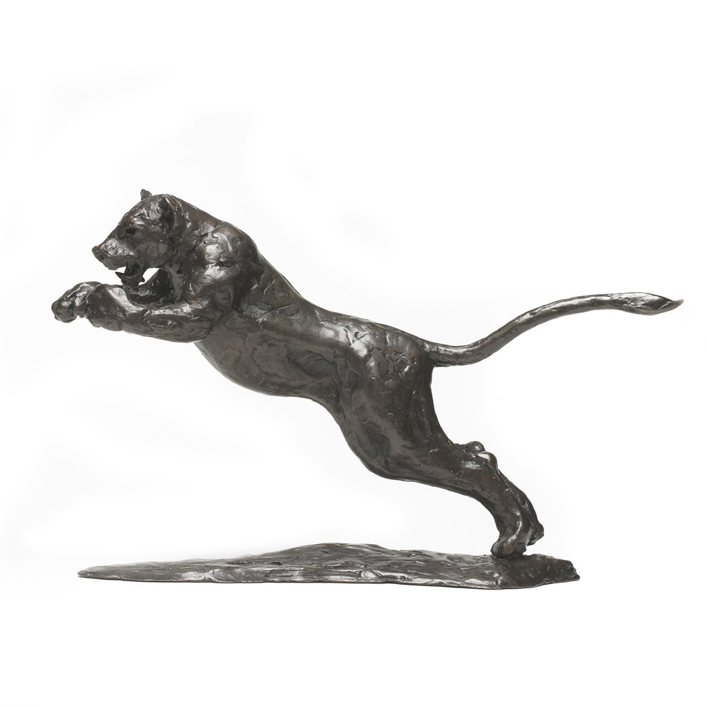 Bronze Lion Sculpture: Large Leaping Lioness by Jonathan Sanders