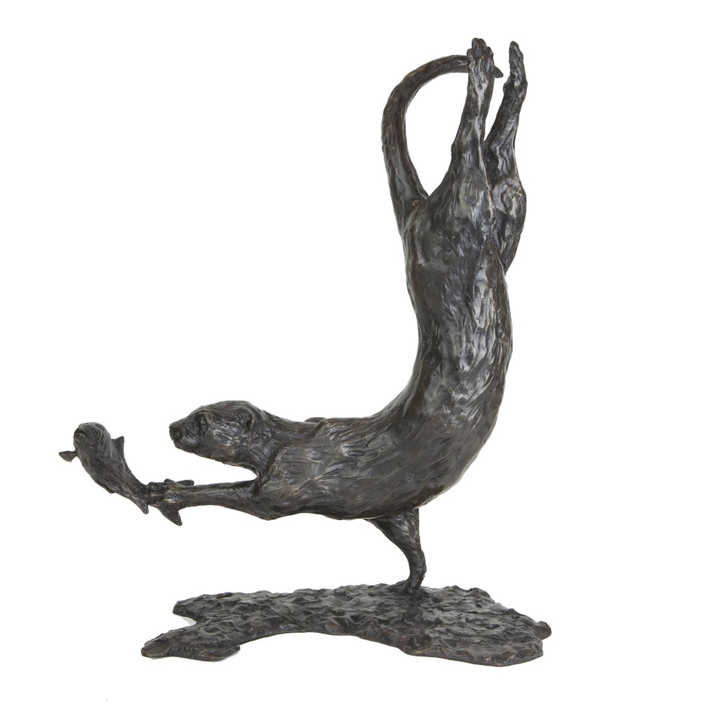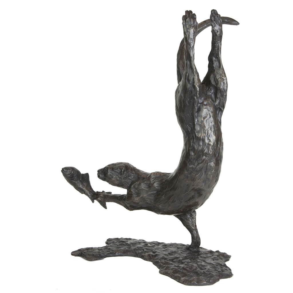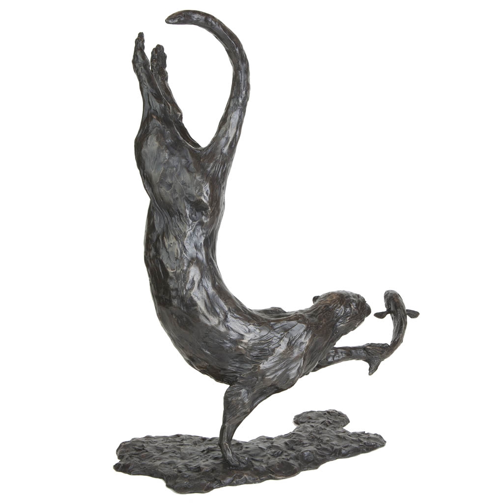 As the sculpture is viewed from different viewpoints, the changing light reflecting on the skillfully patinated surface is reminiscent of fast flowing water, gliding over the coat of the otter as it slices through the water with effortless grace.