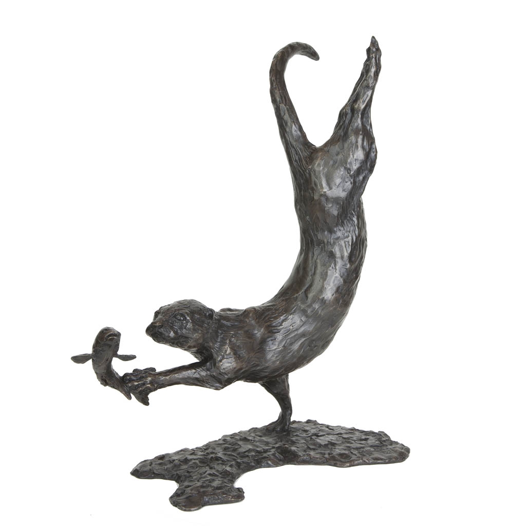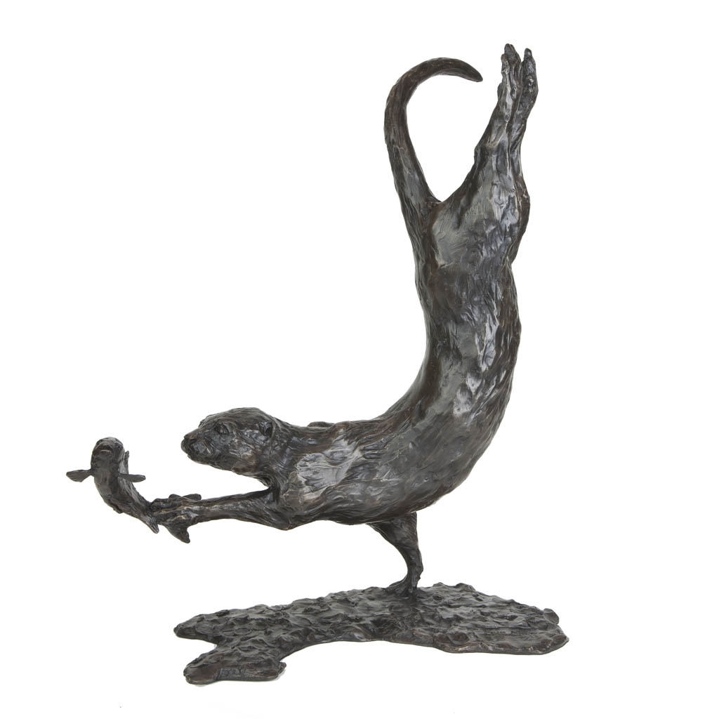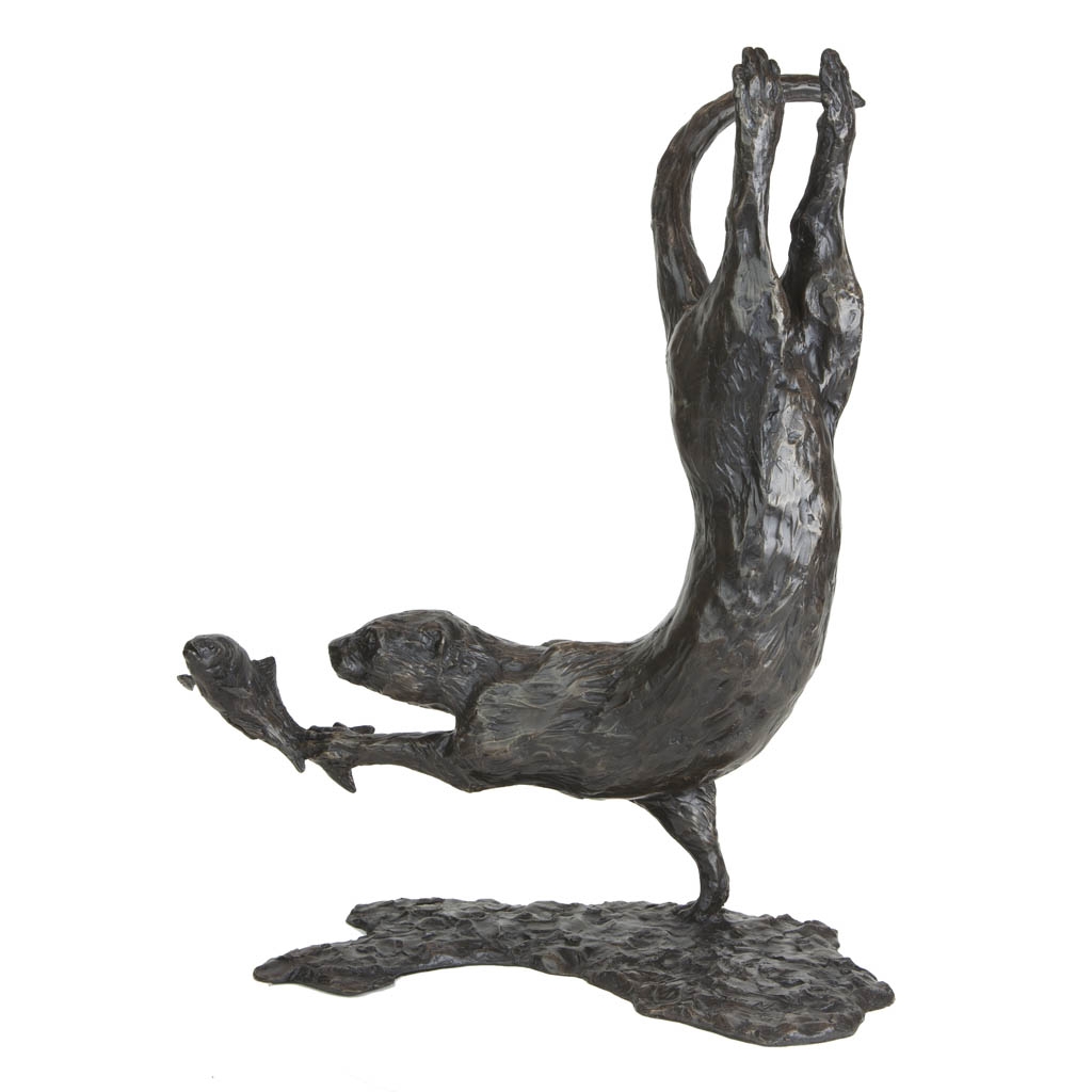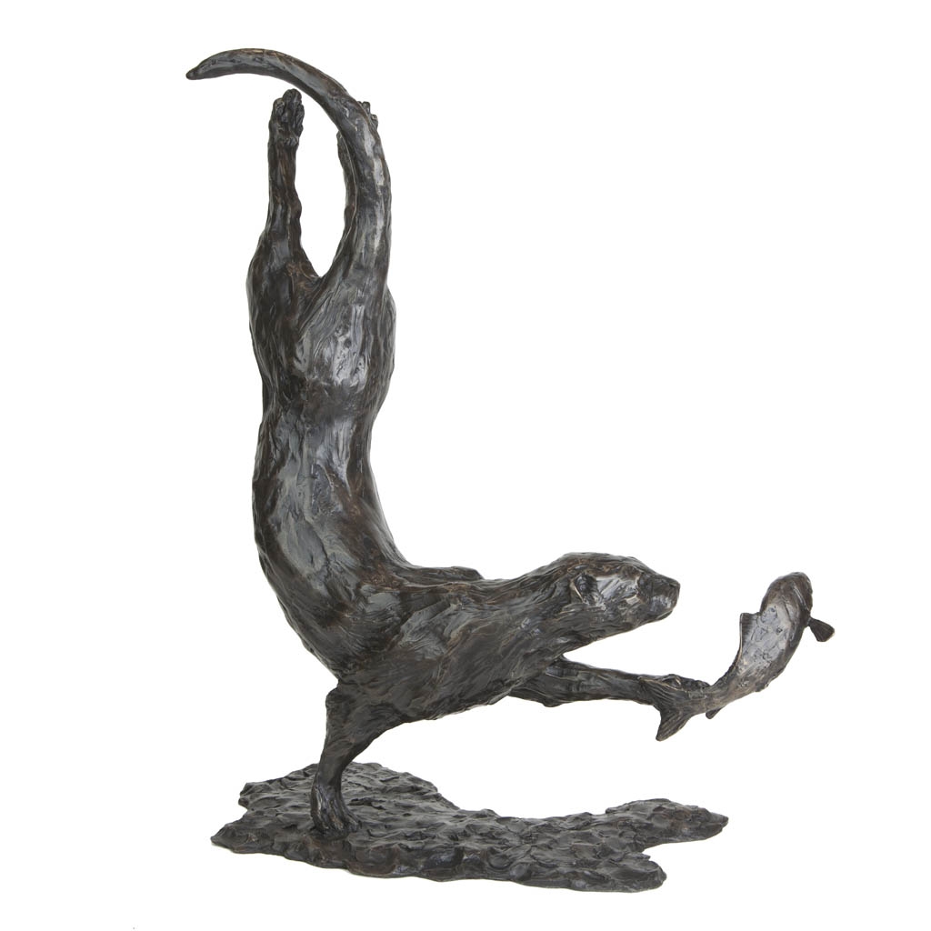 As the sculpture is viewed from different viewpoints, the changing light reflecting on the skillfully patinated surface is reminiscent of fast flowing water, gliding over the coat of the otter as it slices through the water with effortless grace.