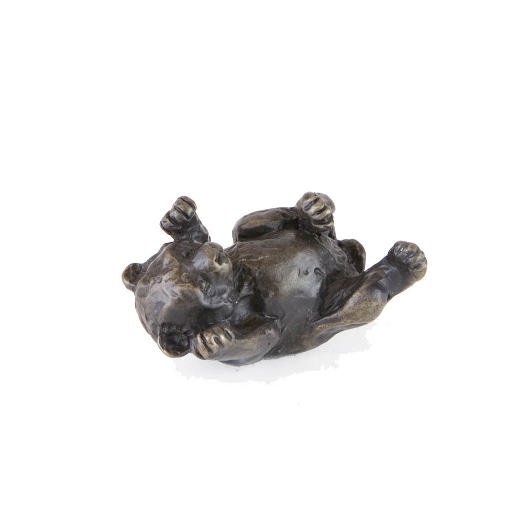 This delightful bronze sculpture captures a Panda cub thoroughly enjoying itself, rolling around and playing in the grass.