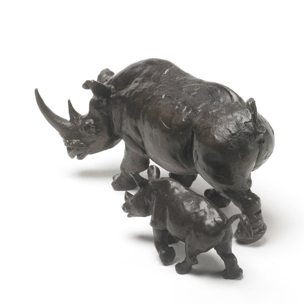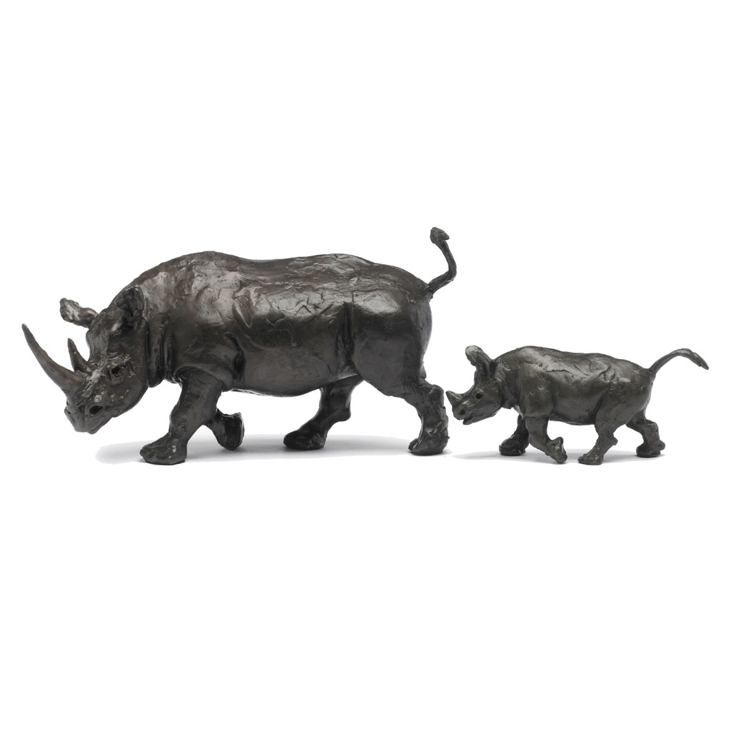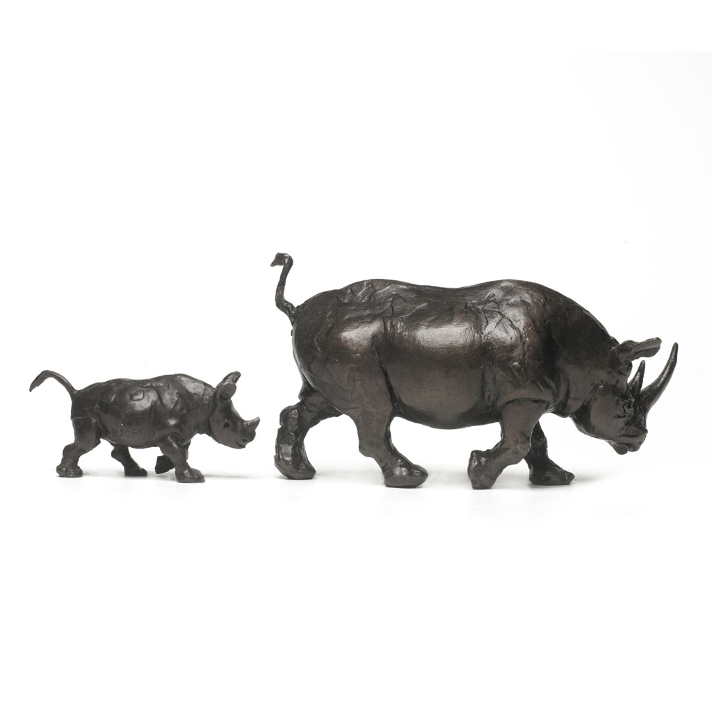 I bought this for my wife’s ??th birthday because we were taking her to Howletts Zoo @ Port Lympne and a special animal experience with Rhinos. I had kept the present as a surprise for later in the day. Little did I know then, but we were taken by the keeper into the “inner sanctum” and what did we see – a “mother & baby” (4 months old!) – wonderful. We also got right up close (stroking & feeding) to many more and in the stables one stood up over barrier as we carried on a conversation 2 feet away – brilliant! – Wonderful creatures. I just thought I had to let you know of our experience and what a wonderful memento your sculpture is and will be – especially the Baby.