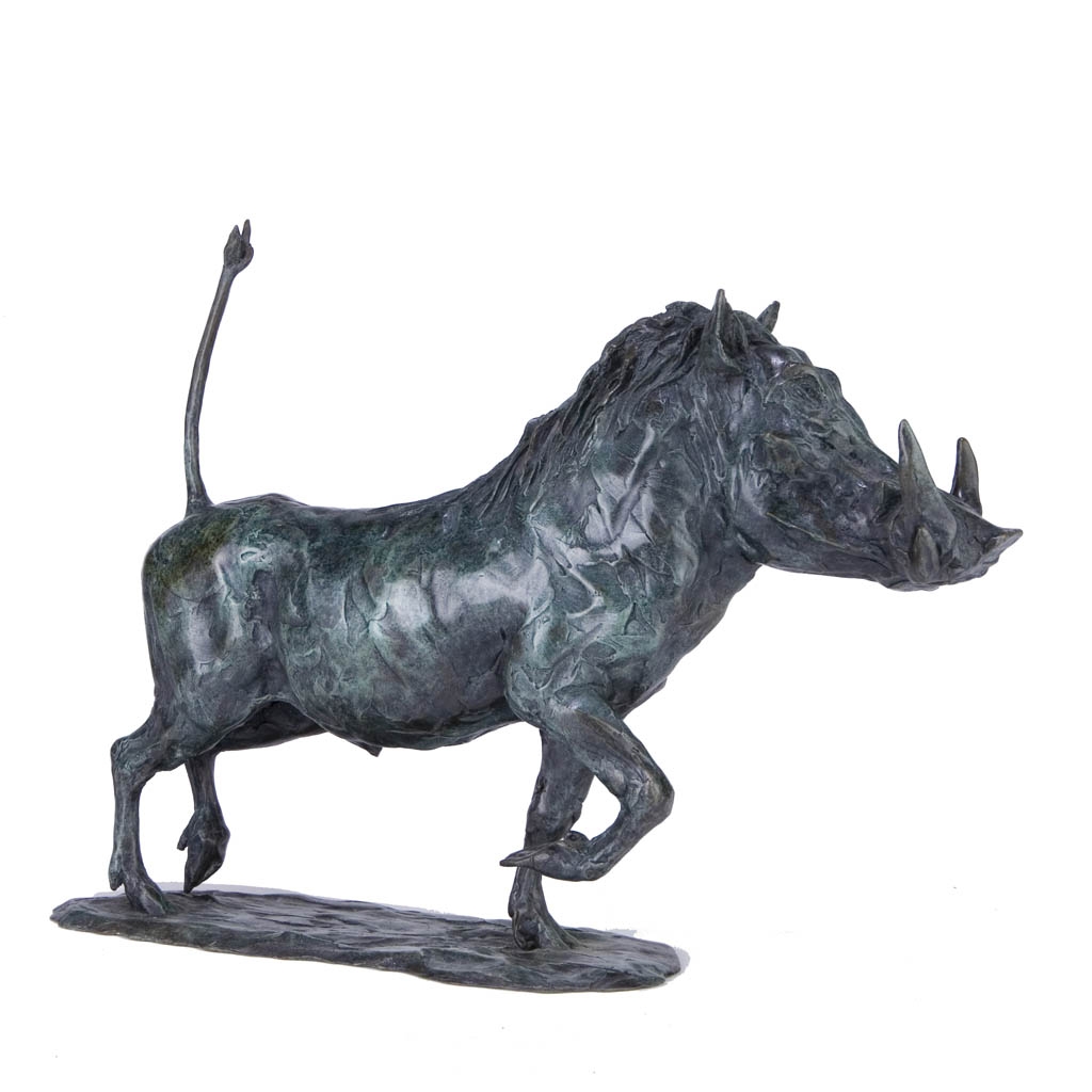 Bronze Warthog Sculpture: Trotting Warthog (Warthog Alarmed!) by Sue Maclaurin (Guest Artist)