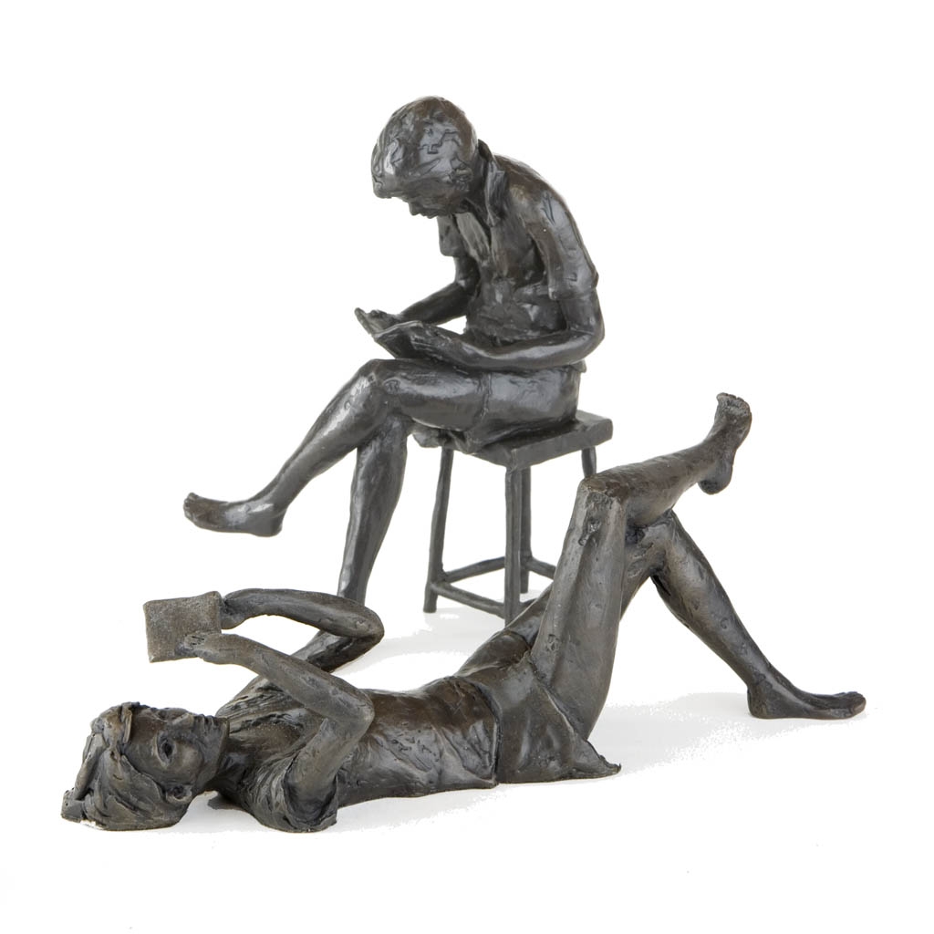Depicting a boy sitting on a stool and reading a book, the sculpture is presented in a high quality English hand made gift box and is accompanied by a numbered booklet of information, signed by the artist, Jonathan Sanders. The booklet is your guarantee that this is an original foundry casting of Jonathan Sanders’s work that he has personally approved.