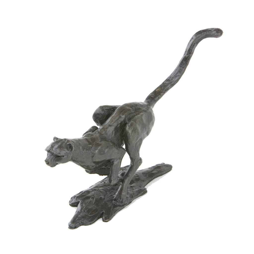 This is a wonderful piece of sculpture, full of purpose, speed and grace. Whatever is occupying this cheetah’s attention had better beware… The casting is of the highest quality and it arrived beautifully presented and boxed. I particularly enjoy it’s tactile quality, it demands to be picked up and enjoyed.
