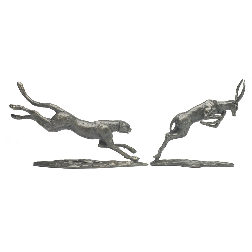 This piece is the same scale as Jonathan Sanders’s Leaping Impala, Running LionHunting Lion and Flying Cheetah, so they make a dynamic set when displayed together.