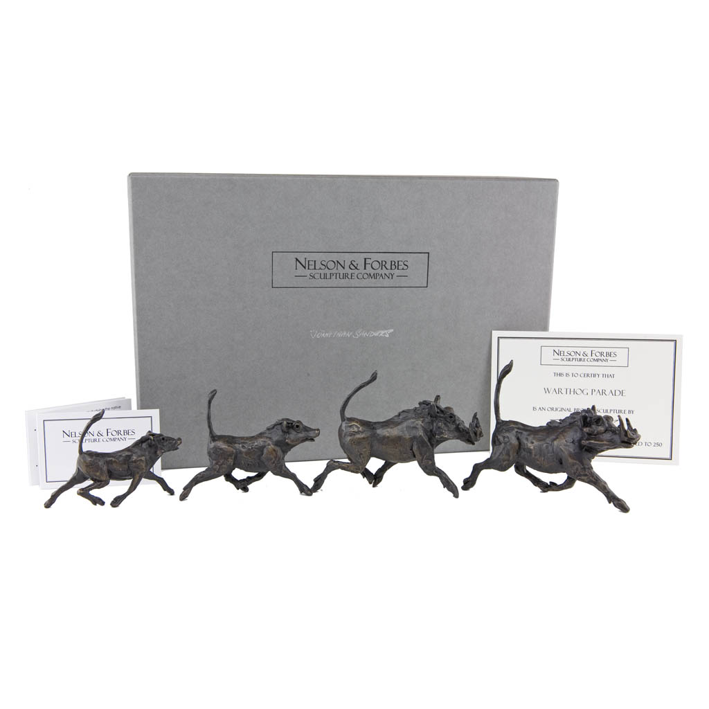 This wonderful bronze sculpture, Warthog Parade by Jonathan Sanders was carefully hand cast by Nelson & Forbes in a British foundry, in an edition of just 250 castings. It is composed of four separate warthogs, which can be arranged as you wish.